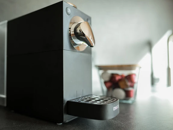Die Wohnküche ist voll ausgestattet mit Spülmaschine, Elektroherd mit 4 Kochfeldern, Backrohr, Kühlschrank mit Gefrierfach, Pad-Kaffeemaschine und Geschirr.