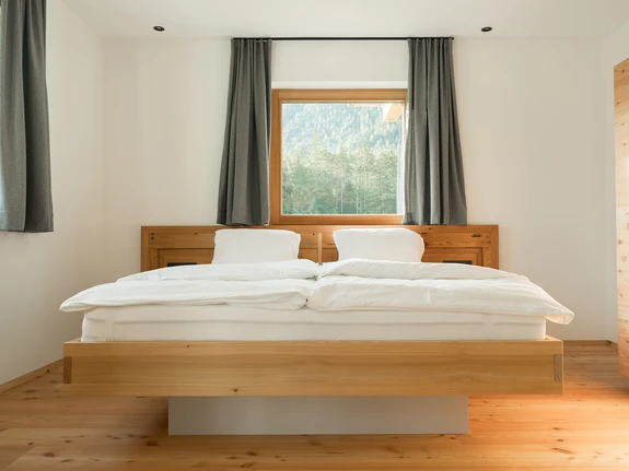 Das Appartement ist nach Osten/Süden ausgerichtet und ist ausgestattet mit Doppelbett, ausziehbarer Couch für 3.+4. Person und Flat–TV.