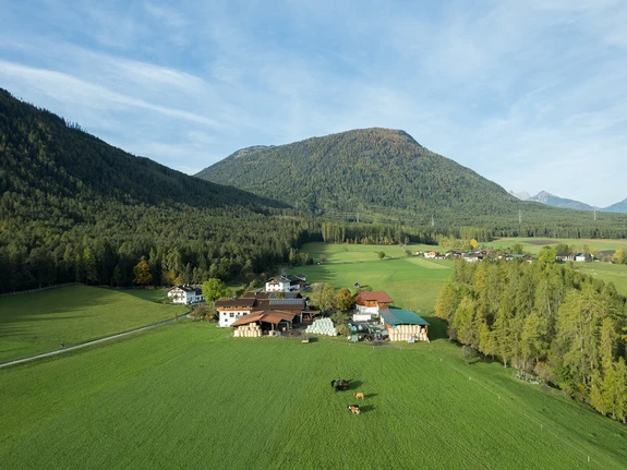 Unser Biohof liegt etwas außerhalb von Obsteig, umgeben von Wiesen und Wäldern. Ruhig und mit herrlichem Blick auf das Inntal und die umliegenden Berge.